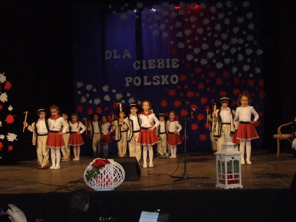 11 listopada 1918 r., to bardzo ważna data w historii. Po 123 latach niewoli Polska odzyskała niepodległość. W tym roku jest to szczególna rocznica – 100 lat niepodległości. Z tej okazji 09.11.2018 r. w sali kina Etiuda dzieci z ostrowieckich publicznych i niepublicznych przedszkoli przygotowały i zaprezentowały zaproszonym gościom i rodzicom wspólny uroczysty program artystyczny pod hasłem „Dla Ciebie Polsko”. Przedszkolaki w pięknych strojach recytowały wiersze, śpiewały patriotyczne pieśni, tańczyły tańce narodowe, ludowe i współczesne. Nasze przedszkole reprezentowały dzieci z grupy VII – jeżyki i VIII – wiewiórki pod kierunkiem Pani Ani D., oraz p. Magdy K. Dzieci zaprezentowały taniec „GÓRALSKI”.